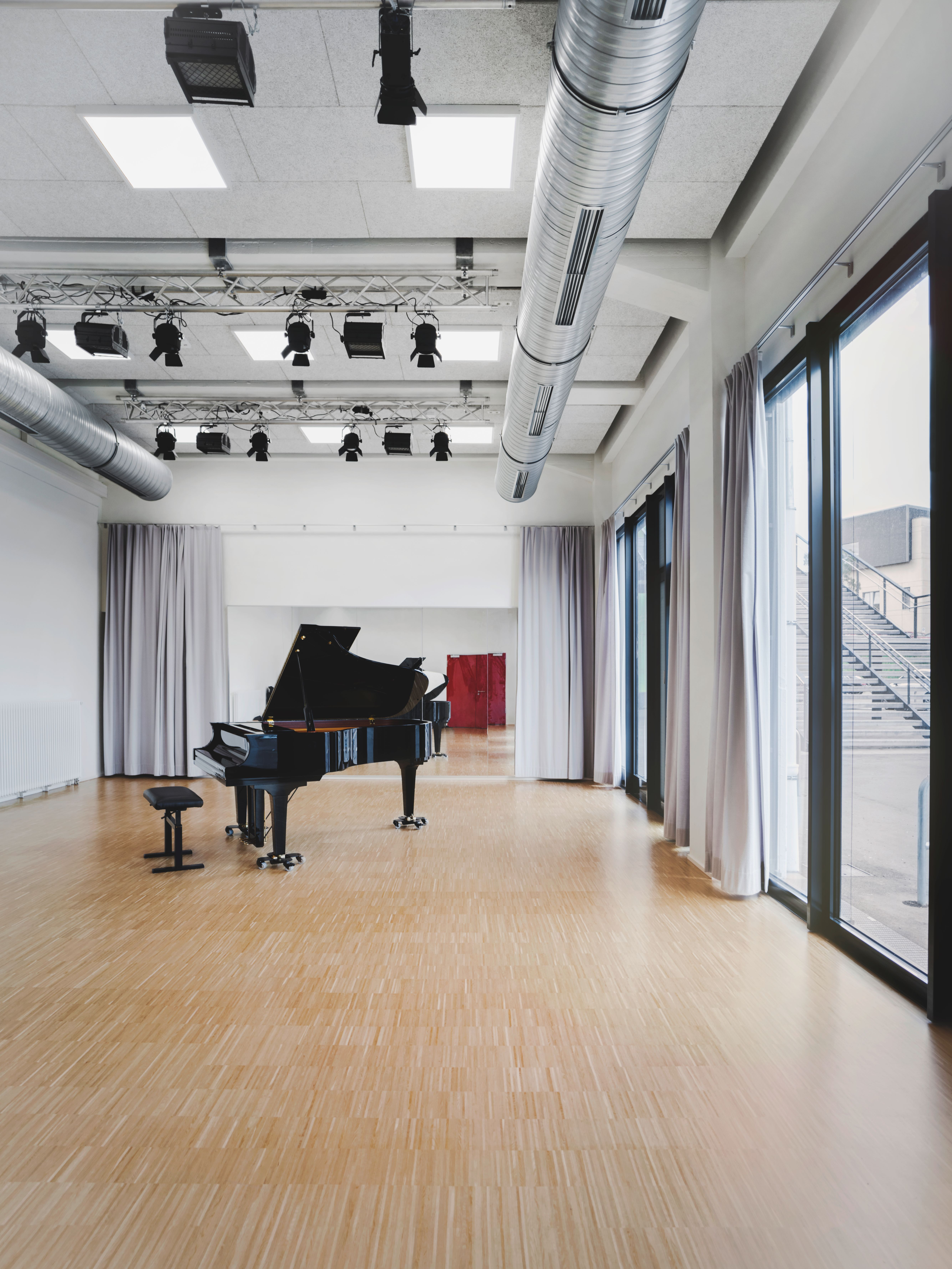 Musikschule mit fünf Übungsräumen auf rd. 440 m², verteilt auf das Obergeschoss und einen kleinen Saal im Erdgeschoss für Aufführungen und Konzerte.